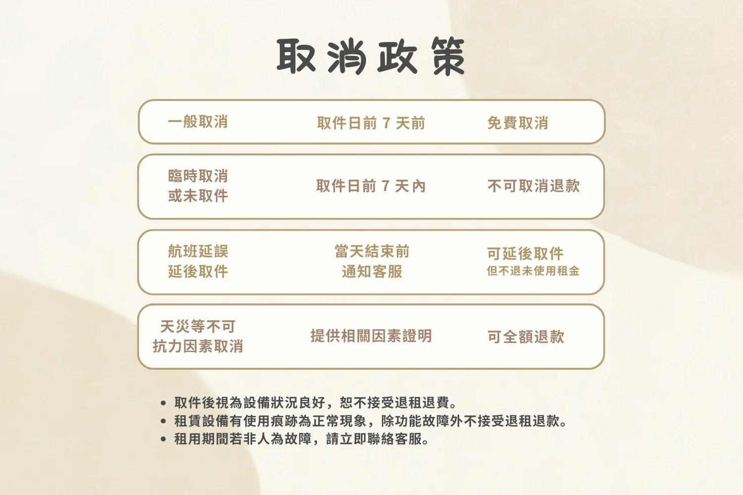 若符合「取件日7天前」的免費取消的條件,請填寫申表單